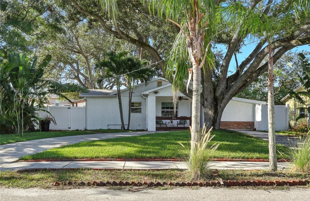 Loaded with Updates! NEW ROOF (Aug 2025), NEW FLOORS (Aug 2025), fresh INTERIOR PAINT (2025), EXTERIOR PAINT (2024), NEW AC (2023), renovated KITCHEN & APPLIANCES (2022), NEW SUMP PUMP (2024), and WATER HEATER (2018). This beautifully updated 2-bedroom, 2-bath block home is move-in ready and ideally located in sought after Ballast Point and best of all, it’s NOT in a flood zone AND has NO HOA! Sitting on a 0.19-acre lot shaded by majestic oaks, this one-story 1,304 sq ft home offers a tropical backyard oasis perfect for entertaining. The 2022 kitchen renovation shines with quartz countertops, shaker cabinets, soft-close drawers and Samsung stainless steel appliances. The spacious primary suite features an en-suite bath and room for a home office or workout nook. Enjoy Florida living year-round on the covered front porch or step out back to the dedicated grilling area and lush yard. Other highlights include a circular driveway, vinyl fencing, storage shed, covered outdoor space, and a brand-new back door (2025). Future potential: Live comfortably now in this move-in ready home, and when the time is right, take advantage of the oversized lot to tear down and build your dream home in one of South Tampa’s most desirable neighborhoods. All of this just minute from MacDill AFB, Bayshore Boulevard, Ballast Point Park, Hyde Park, and Tampa’s premier dining and beaches including Michelin-rated Mad Dogs and Englishmen. Schedule your showing today and see why this updated South Tampa gem is the perfect place to call YOUR home!